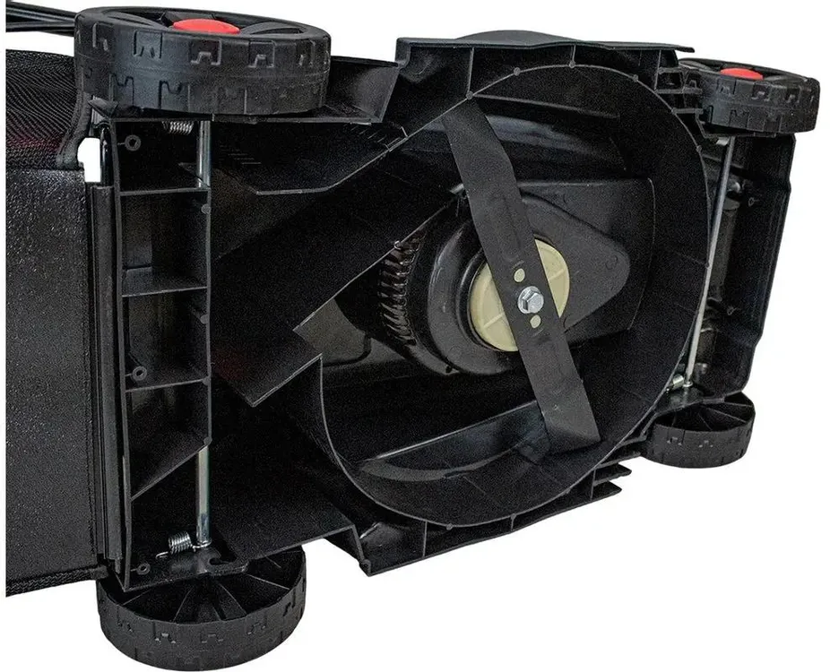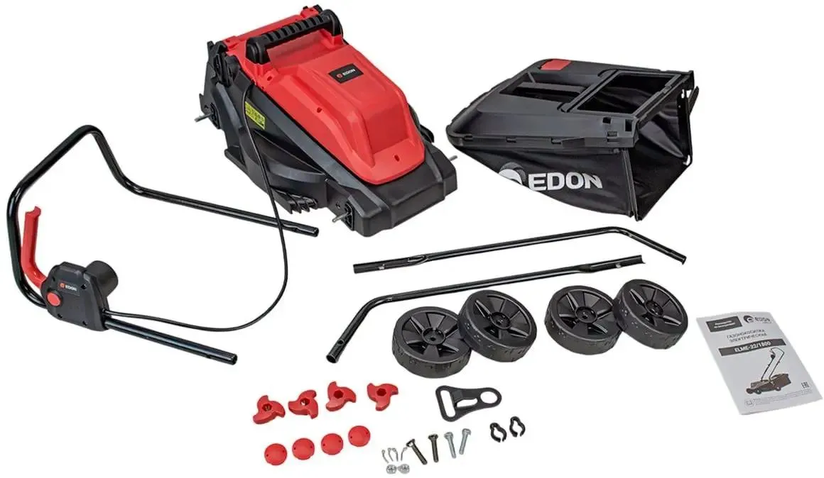 индикатор заполнения травосборника, регулировка высоты скашивания, складная ручка