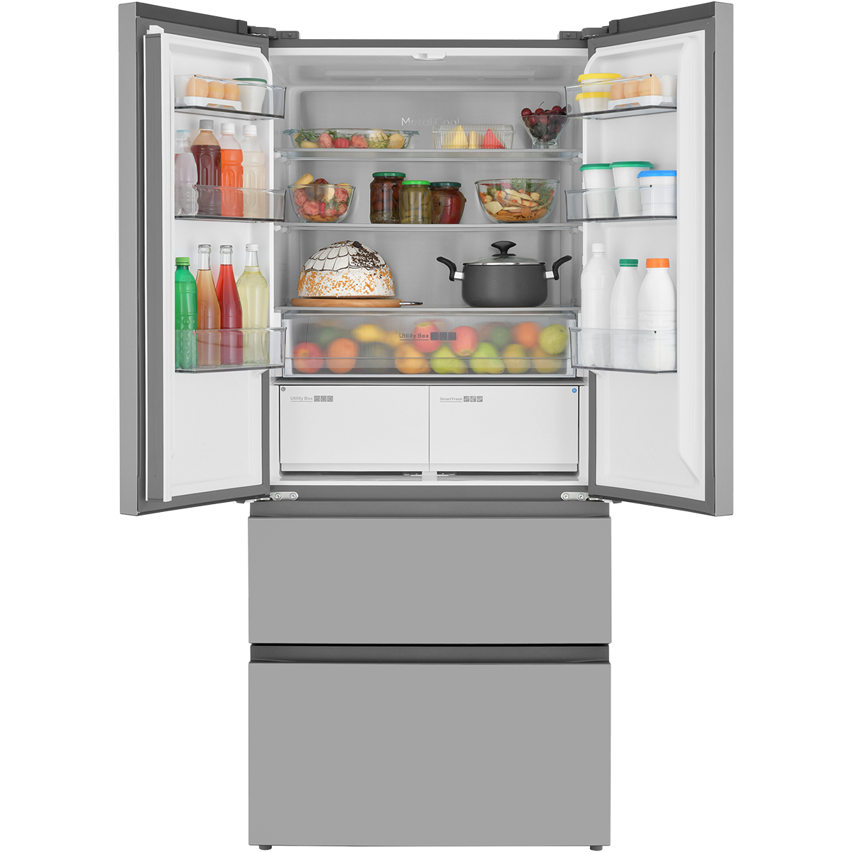 Полки и ящики со стальным обрамлением, Зона свежести Smart Fresh с регулировкой температуры от -3 до 4°С, Особая конструкция и теплоотвод позволяют встроить прибор в нишу