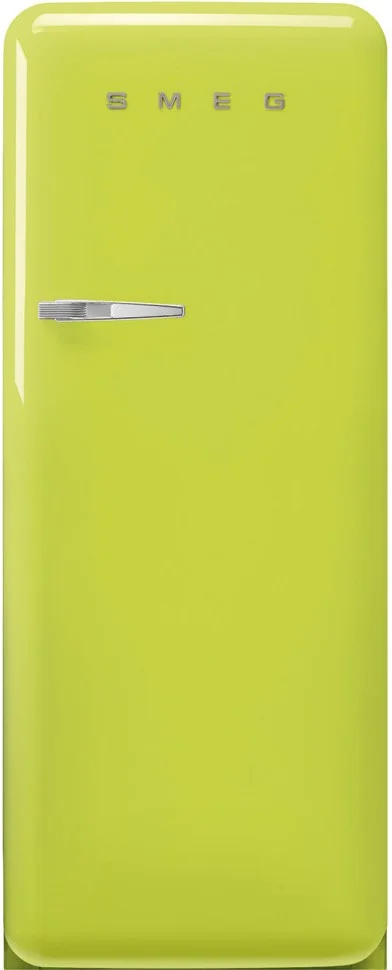 Холодильник Smeg FAB28RLI6 воплощение ретро-эстетики пятидесятых годов, выполненная в насыщенном цвете лайм с аккуратной серебристой фурнитурой, создаёт выразительный дизайнерский акцент и одновременно вписывается в современную кухонную среду. Компактные габариты высотой 153 см, шириной 60,1 см и глубиной 72,8 см (78,8 см с ручкой) делают прибор удобным решением для помещений с ограниченным пространством, а классический форм‑фактор подчёркивает традиционный подход к организации хранения. Корпус сочетает композицию винтажной формы и практичность: округлые линии фасада, аккуратная ручка и приглушённый блеск металлической фурнитуры формируют цельный образ, который привлекает внимание и служит декоративным центром интерьера.