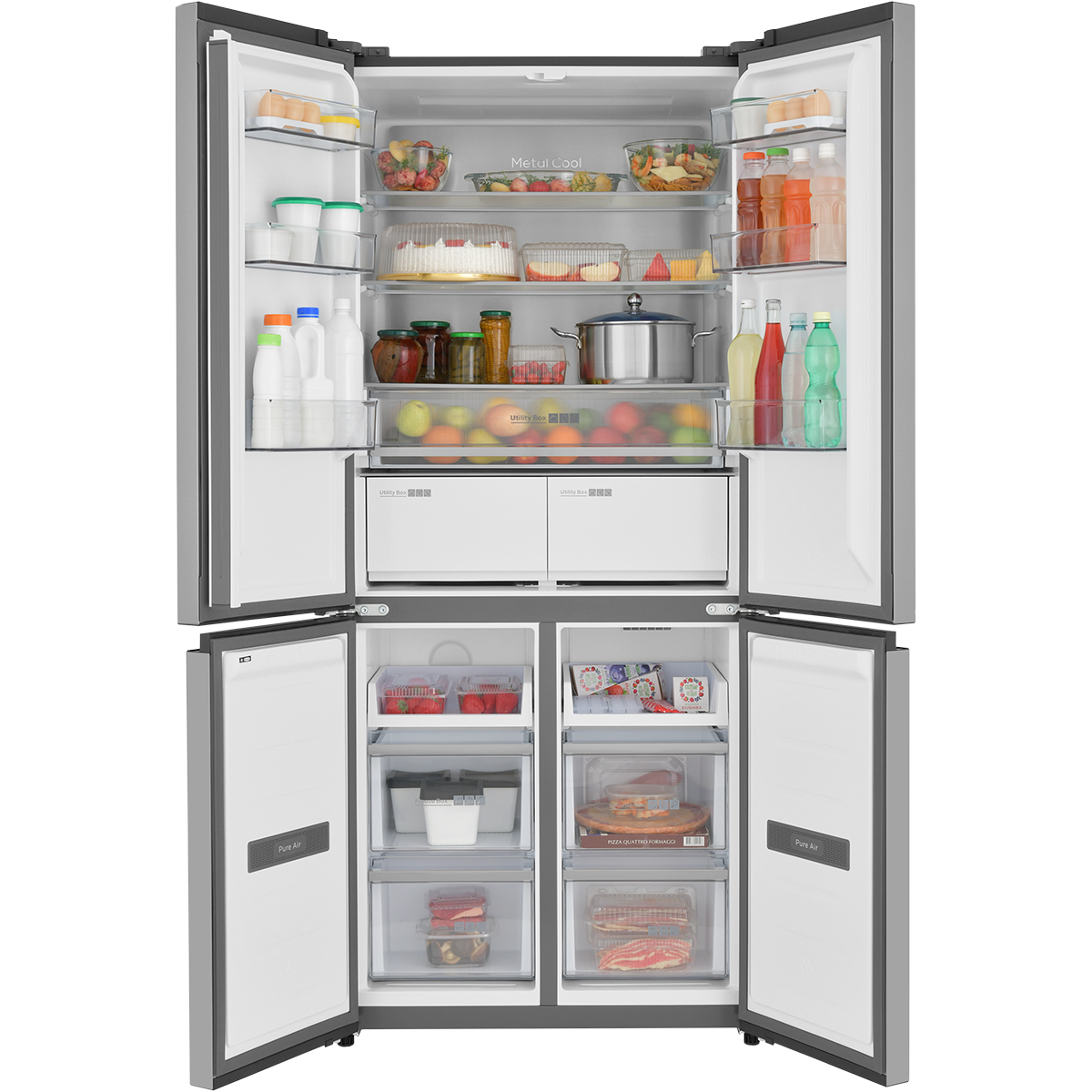 Полки и ящики со стальным обрамлением, 26 температурных режимов от -20 до 5°C в зоне свежести, Предупреждение о повышении температуры в морозильной камере, Особая конструкция и теплоотвод позволяют встроить прибор в нишу, Универсальная камера работает в режимах морозильника и холодильника с большим диапазоном температур
