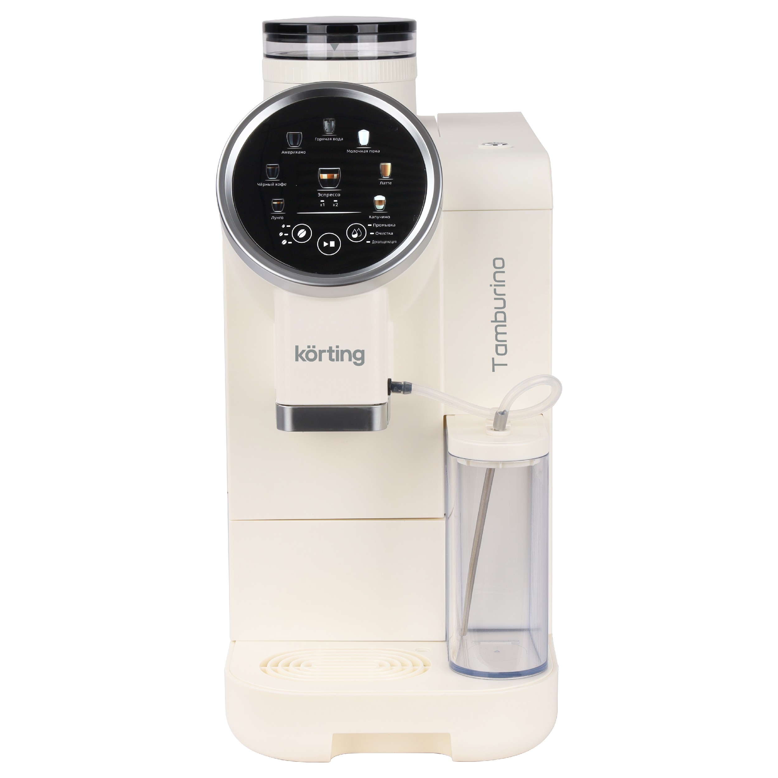 Кофемашина Korting KACM 2028 W Tamburino превращает приготовление кофе в простой и быстрый ритуал: достаточно одного касания, чтобы получить насыщенный эспрессо или напиток с нежной молочной пеной. Встроенная кофемолка с 6 степенями помола и помпа на 19 бар раскрывают аромат зёрен и позволяют настроить напиток под свой вкус. Автоматический капучинатор сам взбивает и подаёт молоко, обеспечивая стабильный результат без лишних действий. Удобная сенсорная панель и автоматические программы очистки делают уход за кофемашиной лёгким, а вместительные резервуары позволяют наслаждаться кофе каждый день без частого обслуживания.