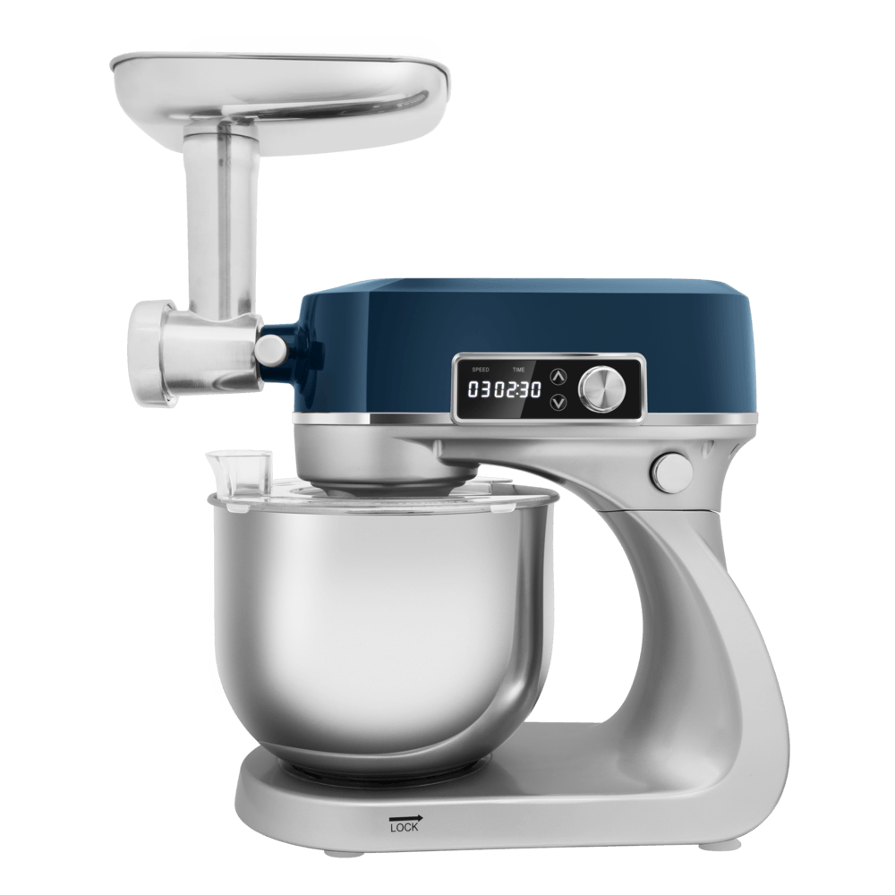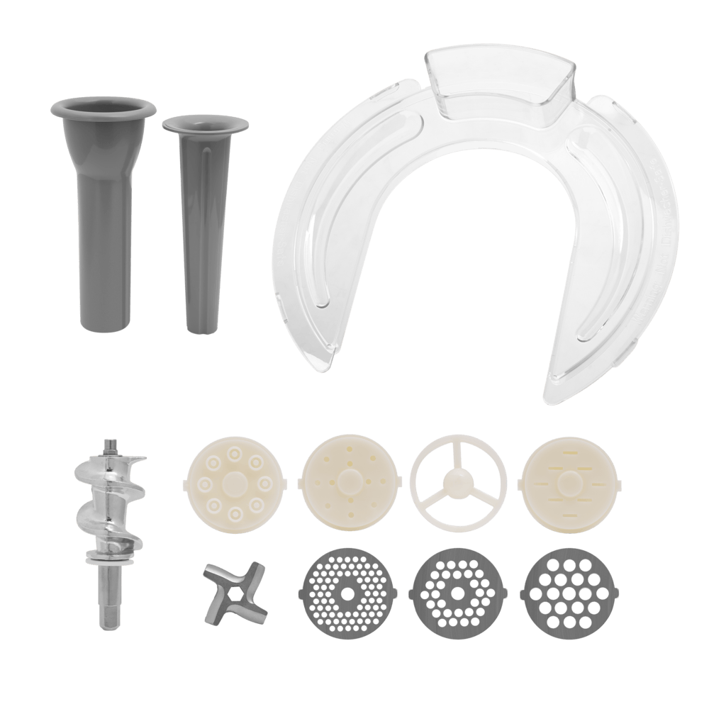 Комплектация крюк для теста, венчик, крышка чаши, 1 чаша из нержавеющей стали, мясорубка (включая 3 насадки из нержавеющей стали, наконечник для колбасы), 3 диска для макарон