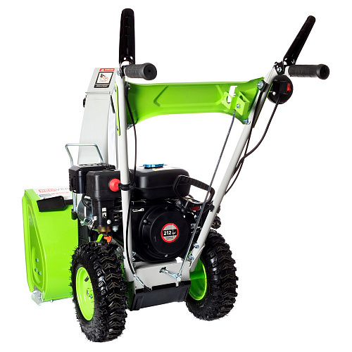 Основная части машины в частично разобранном виде; Ручка; Желоб снегоотбрасывателя; Транспортировочные Колеса; Комплект крепежа; Разъёмное скользящее кольцо поворотного жёлоба. Фара.