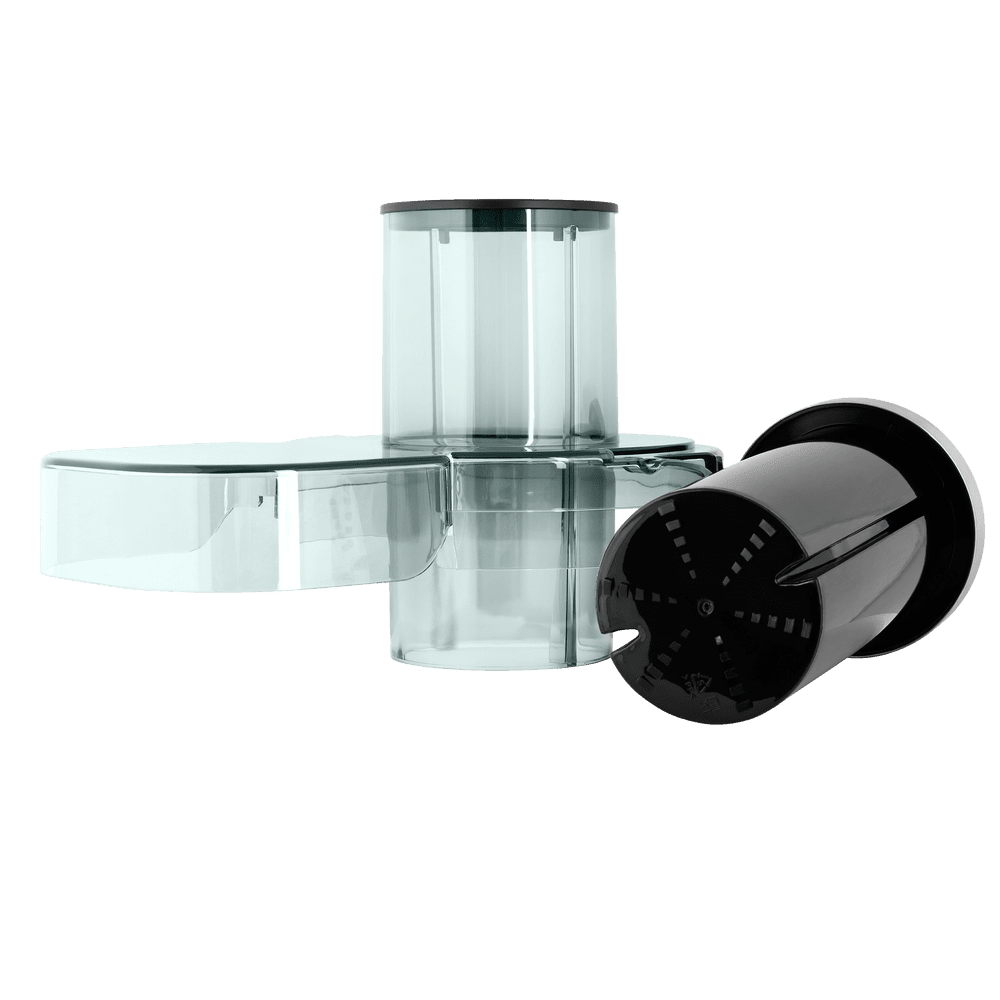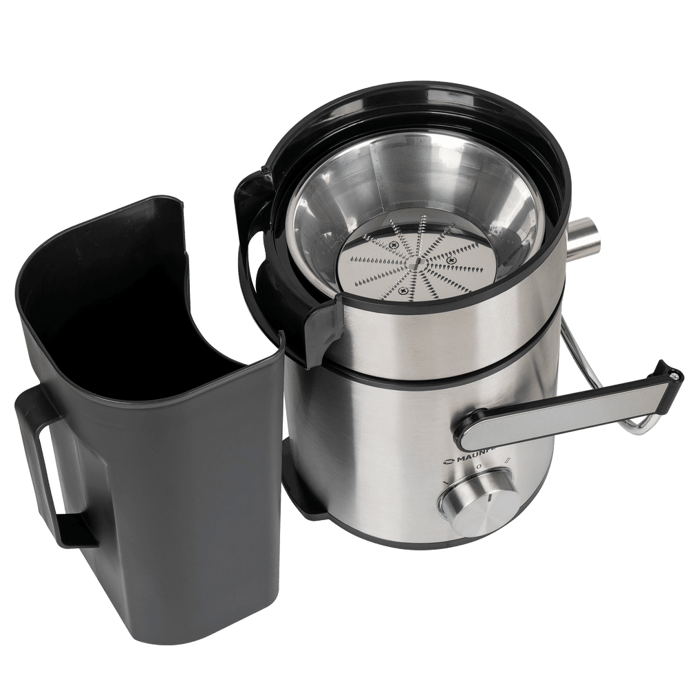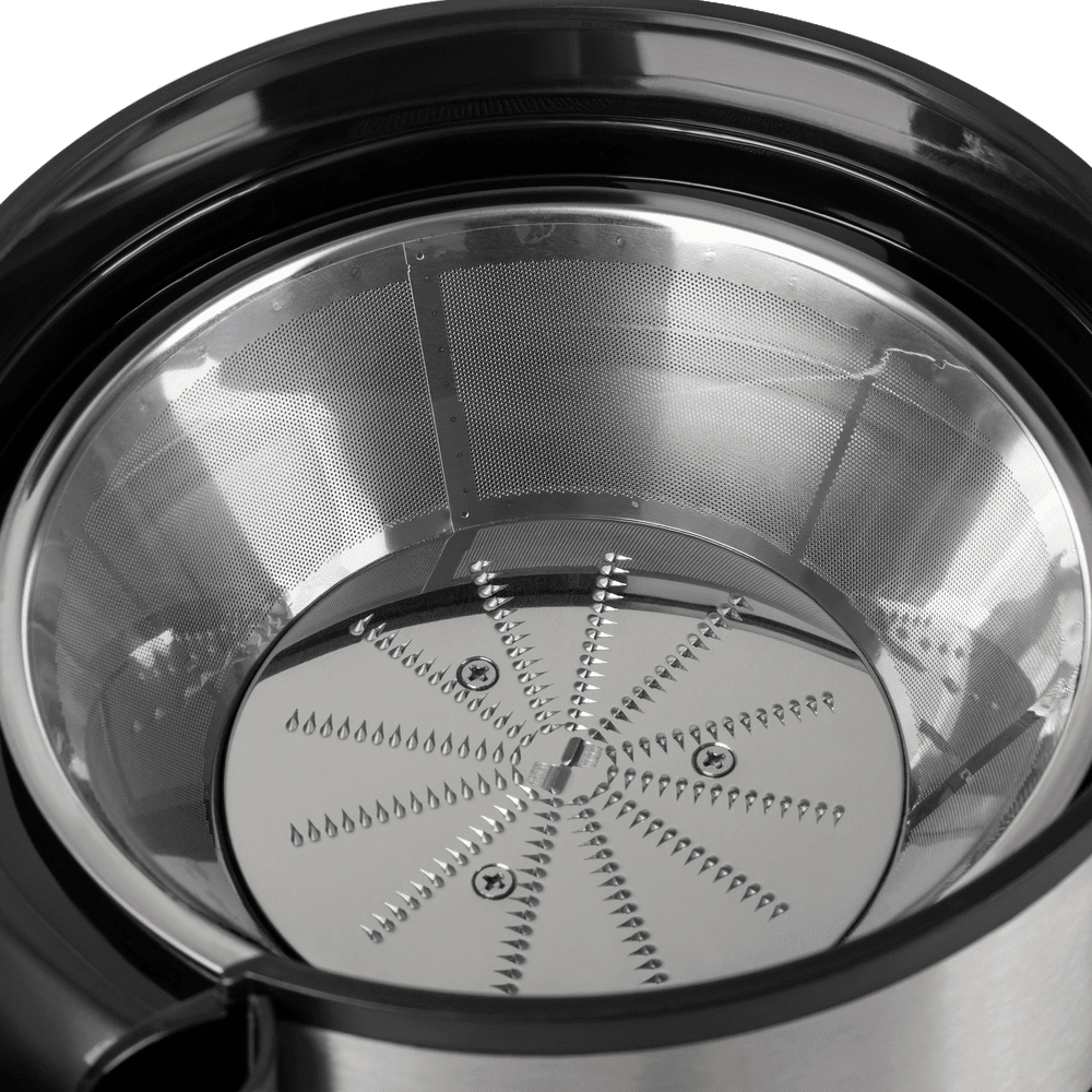 Комплектация Толкатель, контейнер для сбора мякоти 2.5 л, стакан для сока 1.1 л, фильтр-тёрка из нержавеющей стали, стальные ножи в сборе