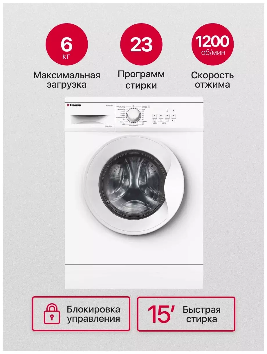 Загрузка белья для стирки и отжима: 6 кг