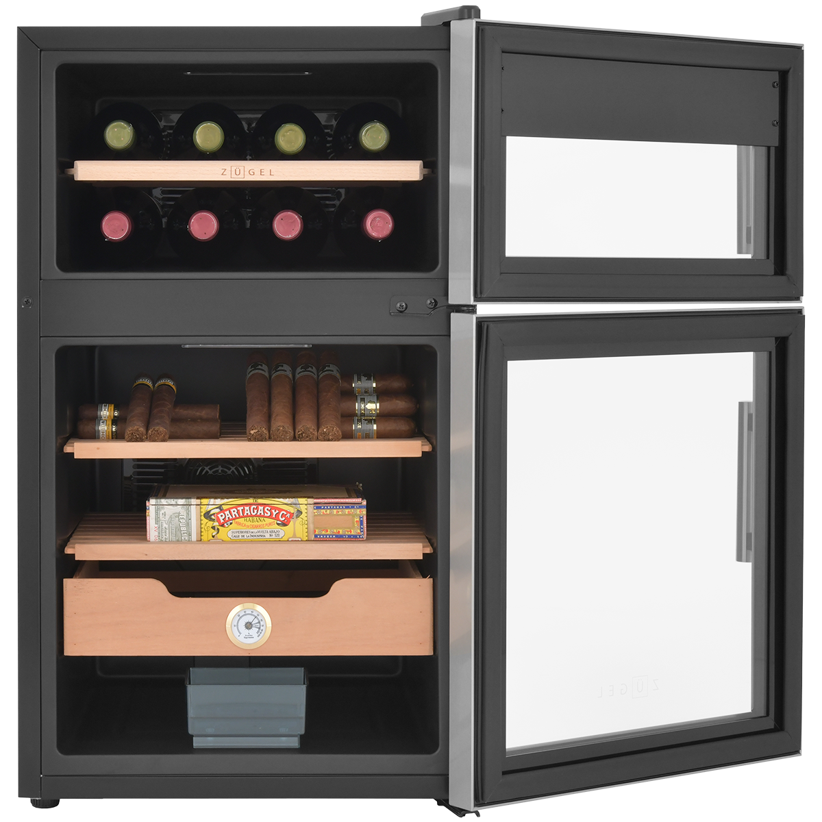Ёмкость для воды в комплекте, Регулируемые ножки по высоте, полки в винном отделении из бука, в отделении для сигар - из испанского кедра