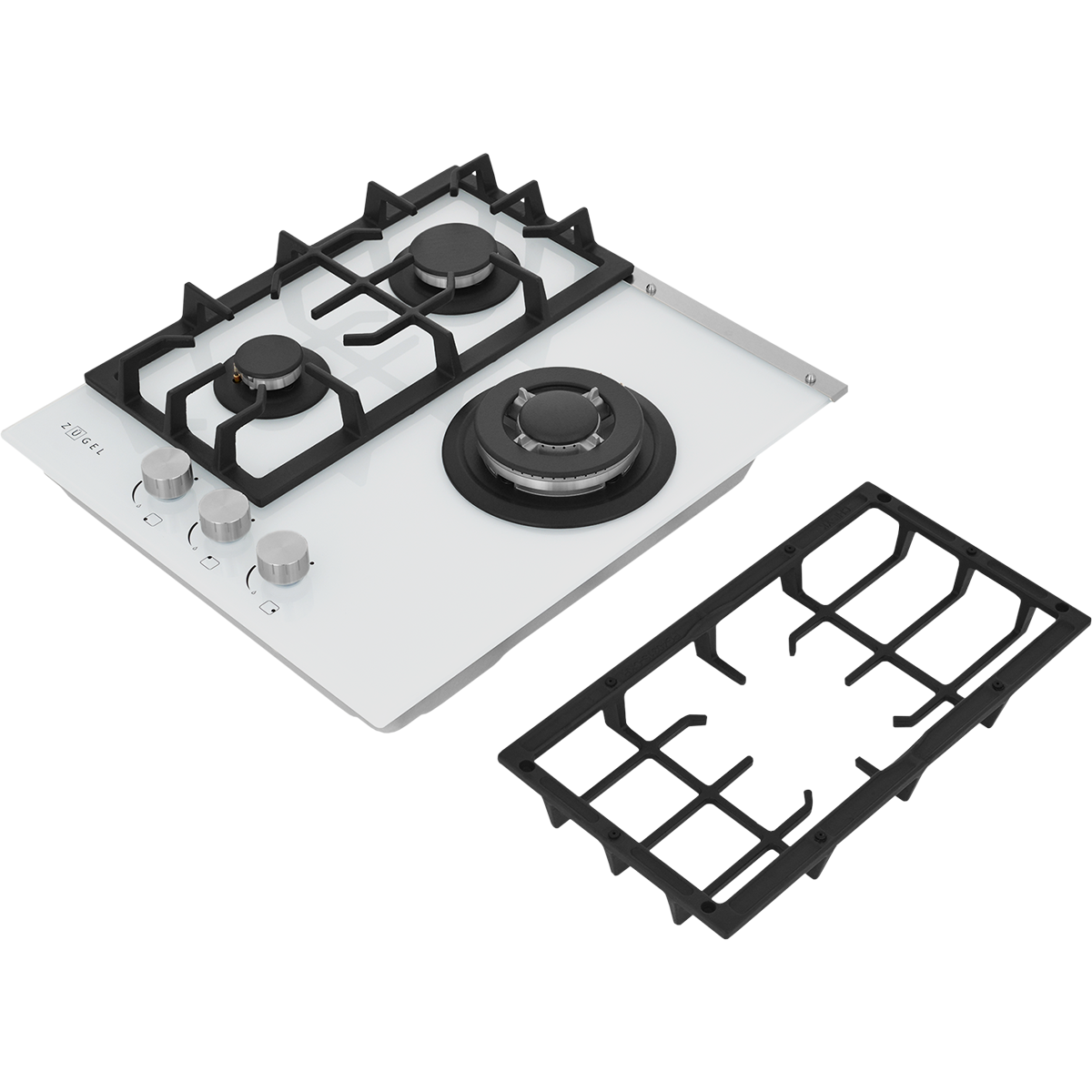 Мощная WOK-конфорка с 2 рассекателями и тройным контуром огня, Металлические дизайнерские ручки, Технология "газ на стекле", Форсунки для конверсии(природный/сжиженный) газа в комплекте