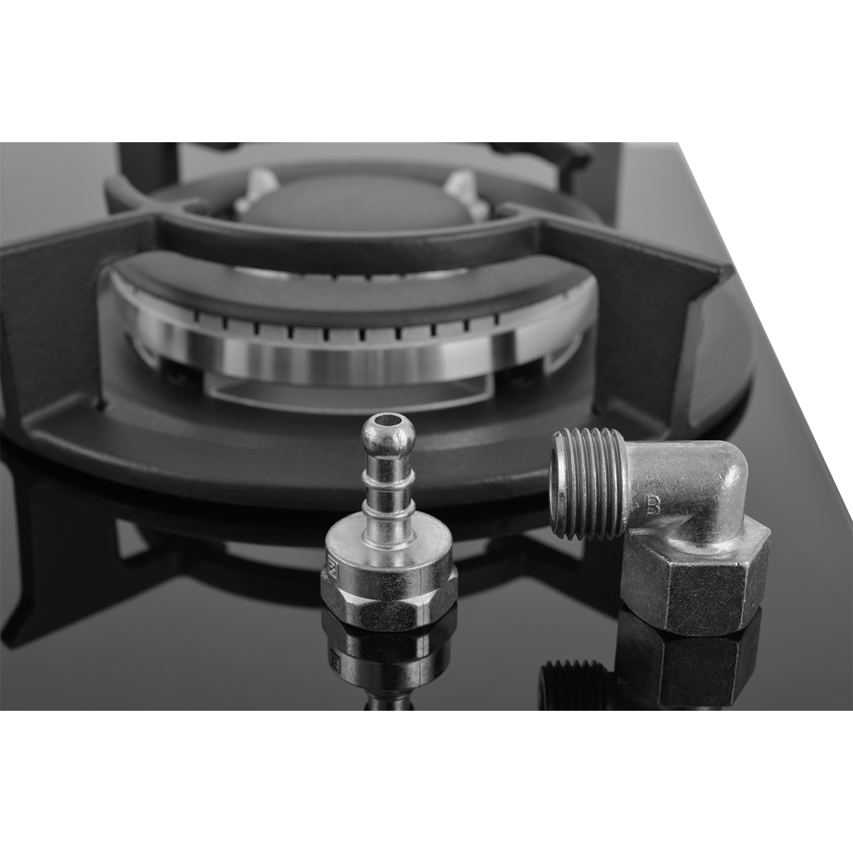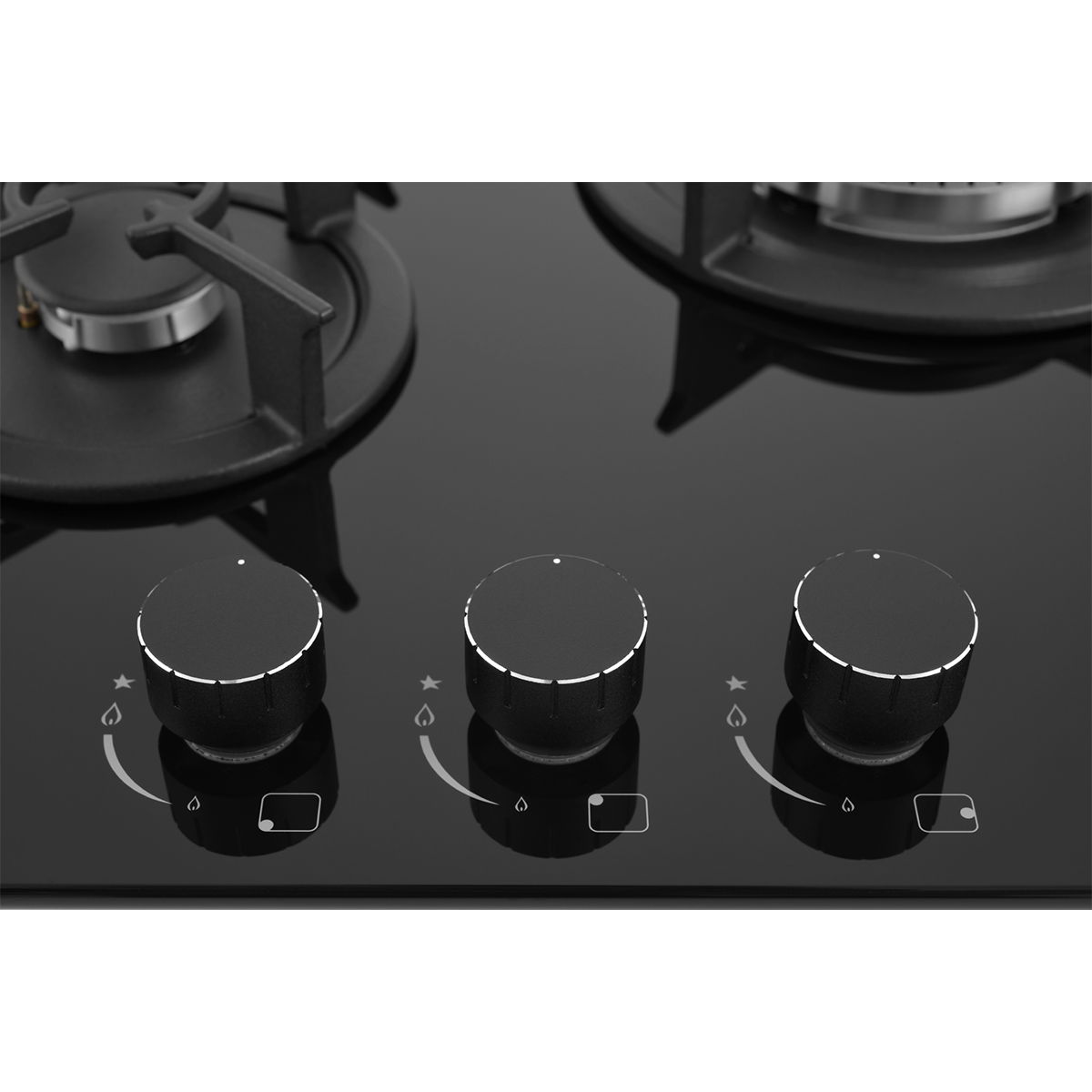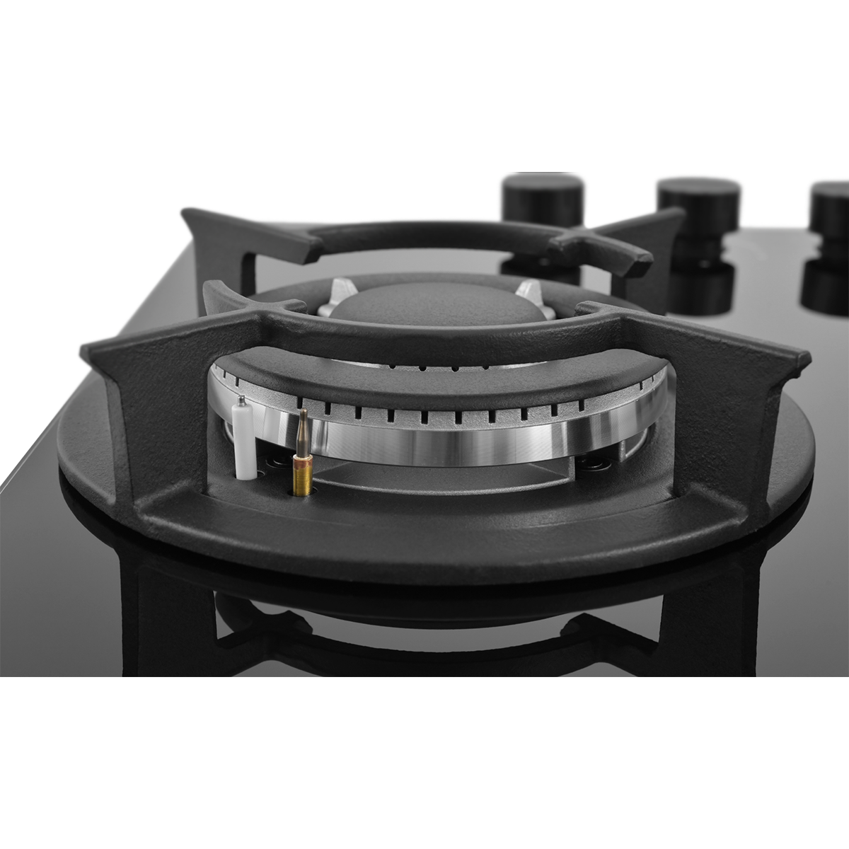 Мощная WOK-конфорка с 2 рассекателями и тройным контуром огня, Металлические дизайнерские ручки, Форсунки для конверсии(природный/сжиженный) газа в комплекте