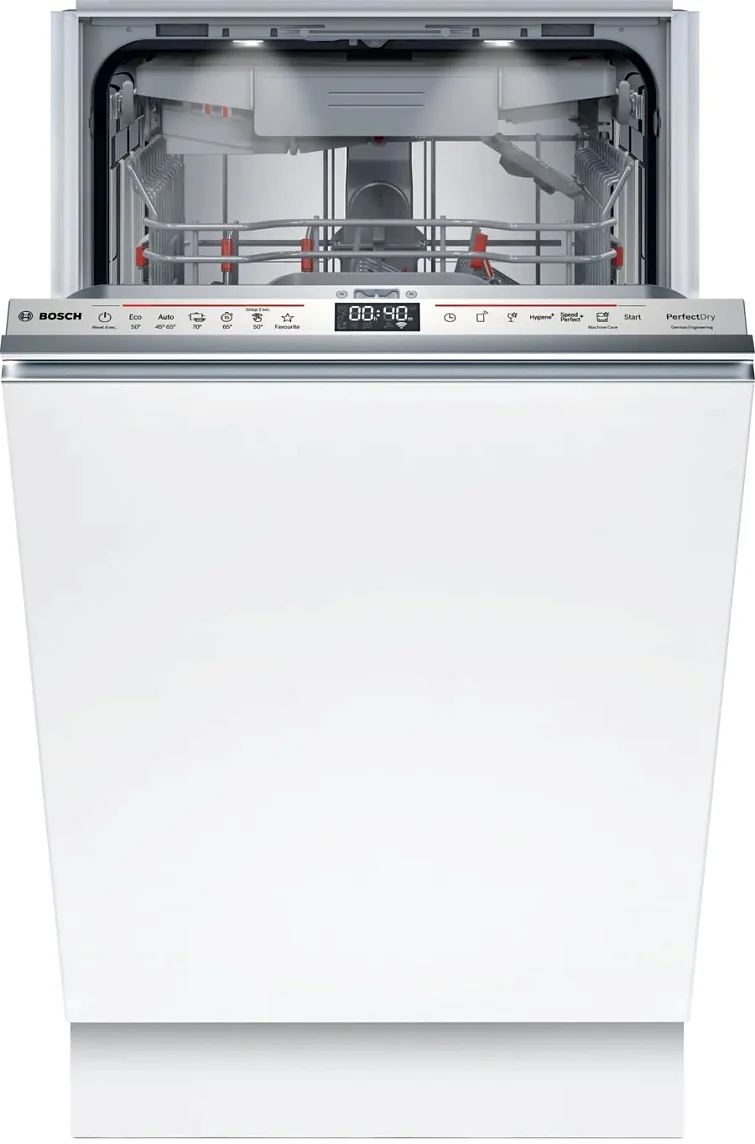 Встраиваемая посудомоечная машина Bosch SPV8ZMX06Q обладает сдержанными линиями и панелью из нержавеющей стали, которая гармонично встраивается в мебельный гарнитур и придаёт кухонному пространству аккуратный, современный вид. Узкая конструкция рассчитана на ограниченное пространство, при этом сохраняет функциональную вместимость на десять стандартных комплектов, что делает модель отличным решением для малых и средних семей. Внутренняя камера выполнена из сочетания нержавеющей стали и прочного пластика, обеспечивая долговечность при интенсивной эксплуатации; производитель подтверждает защиту от сквозной коррозии сроком в десять лет, а стандартная гарантия составляется двенадцать месяцев.