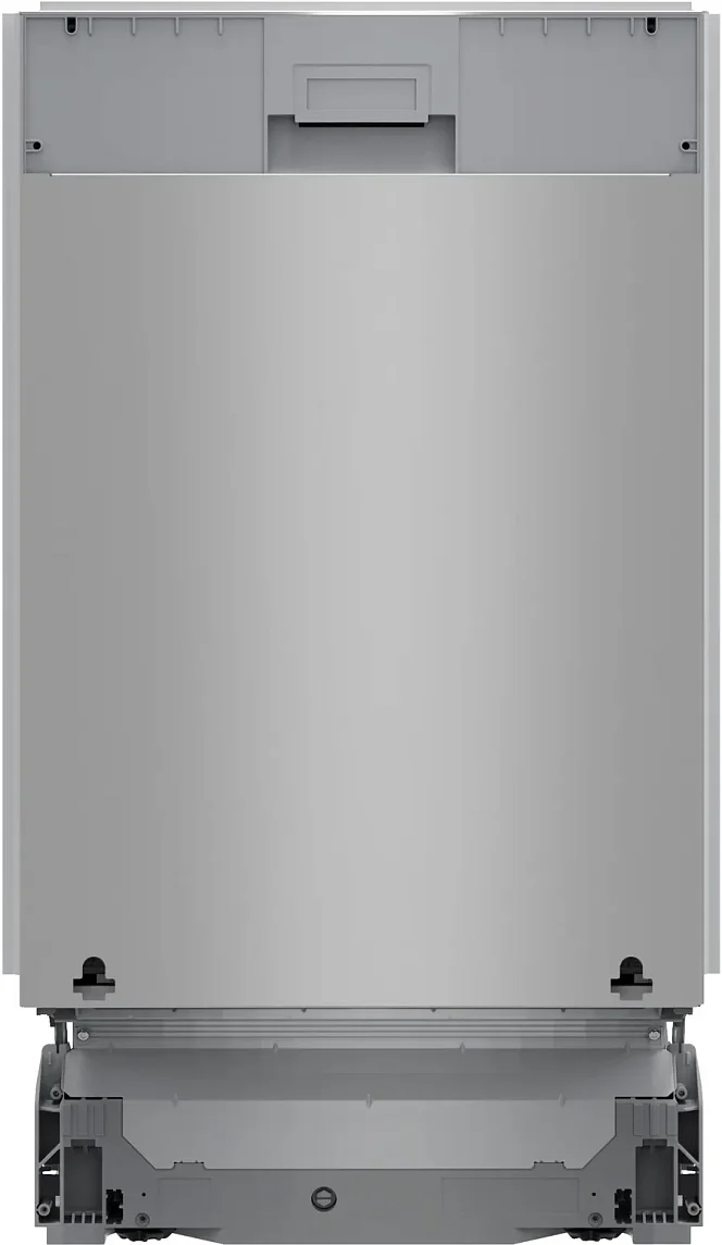Управление сосредоточено на закрытой панели с информативным дисплеем и удобными сенсорными кнопками — это позволяет поддерживать чистый фасад без выступающих элементов. Для индикации состояния используются встроенные световые сигналы наличия ополаскивателя и соли, а также отображение времени до окончания программы; вместо привычного проекционного индикатора применён лазерный луч Time light. Жёсткое крепление фасада обеспечивает плотную интеграцию с дверью шкафа, а задние ножки регулируются спереди, облегчая монтаж по уровню.