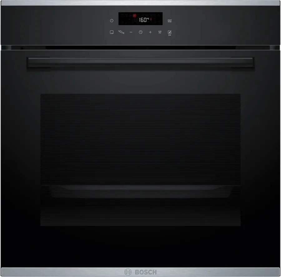 Духовой шкаф Bosch HBG272EB3 выполнен в строгом черном оформлении с матовой панелью и черной фурнитурой, что позволяет органично вписать его в современную кухонную мебель любого оттенка. Компактные наружные габариты — высота 59.5 см, ширина 59.4 см, глубина 56.7 см — совмещены с внушительным внутренним объемом 71 литр, что обеспечивает простор для крупногабаритных форм и многослойных блюд. Для монтажа предусмотрены точные размеры ниши 60–60.4 см по высоте, 56–56.8 см по ширине и глубина 55 см, благодаря которым установка проходит аккуратно и с минимальными допусками. Корпус спроектирован с учетом системного охлаждения, что продлевает срок службы электронных элементов и защищает окружающую мебель от перегрева.