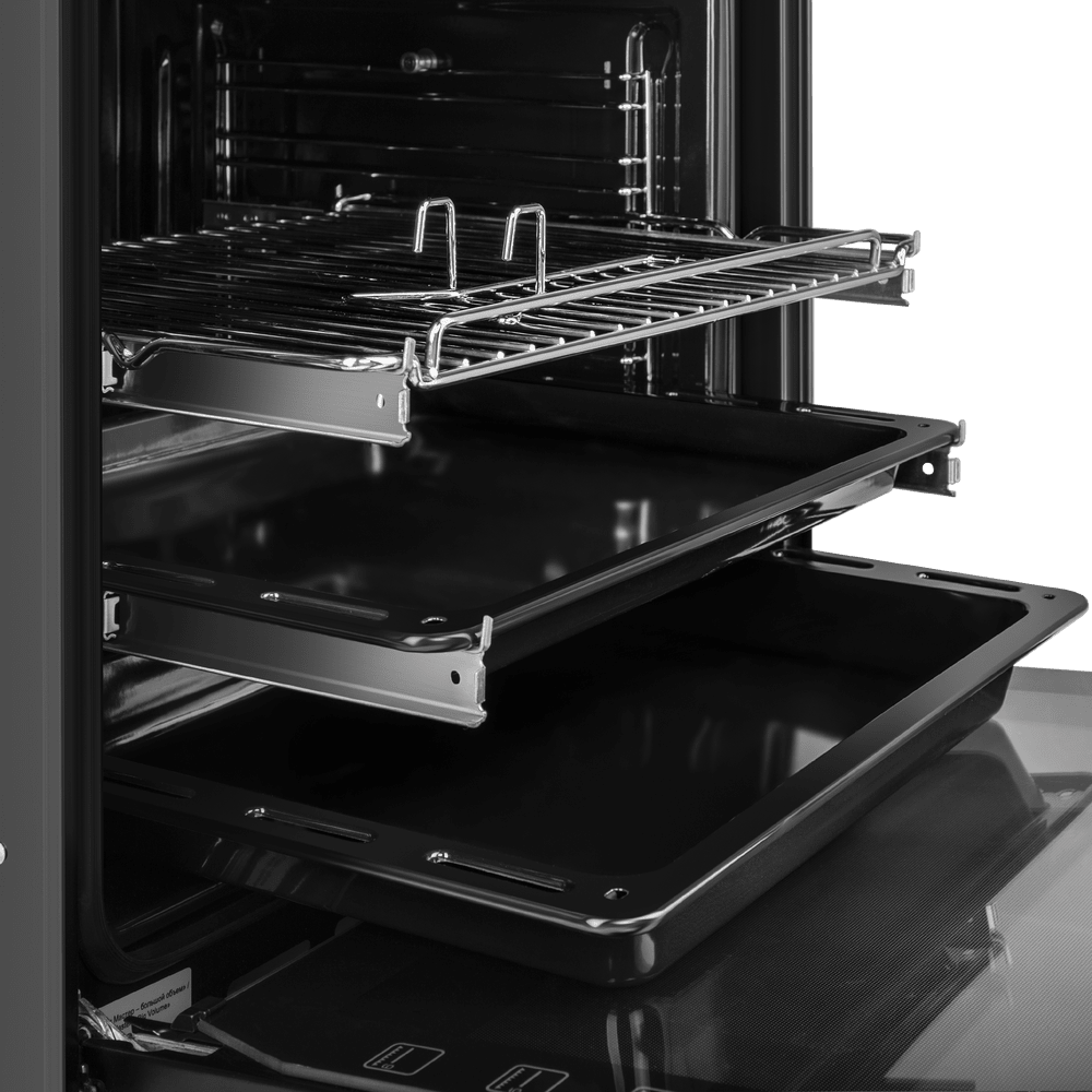 Дверца духового шкафа состоящая из 3 стекол - это гарантия медленного нагревания внешнего стекла, что создает холодный фронт и делает процесс приготовления безопасным исключая возможность ожога при касании.