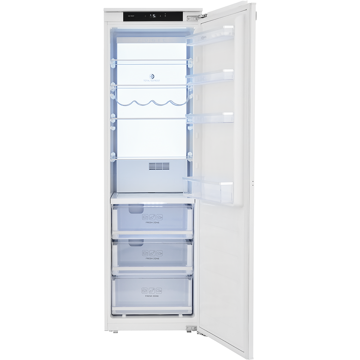 LED-подсветка всей площади задней панели AMBILIGHT, Гравировка логотипа на задней стенке, Режим Silent (Тихий), Три выдвижных ящика, Два ящика на металлических телескопических направляющих, Зона свежести, Полки и ящики со стальным обрамлением, Блокировка панели управления